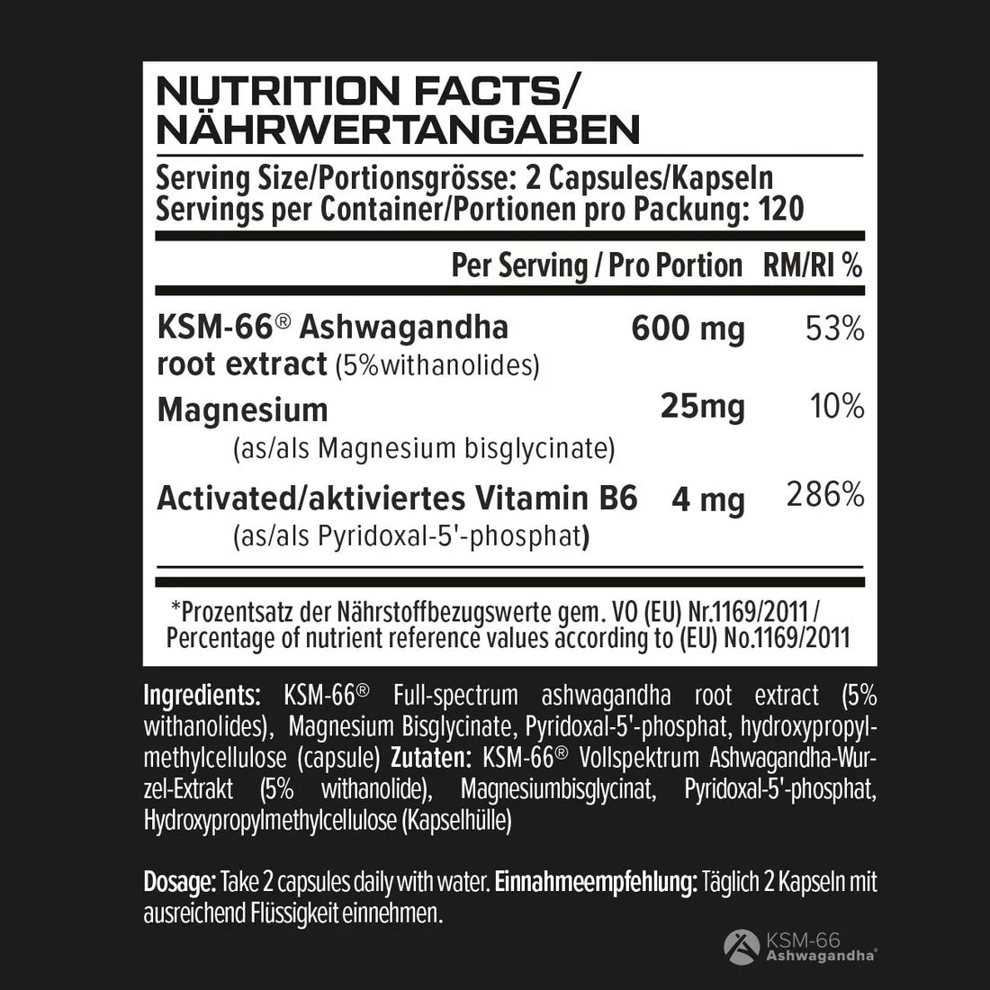 - 600mg Patentierter KSM-66® Premium Bio-Ashwagandha-Extrakt